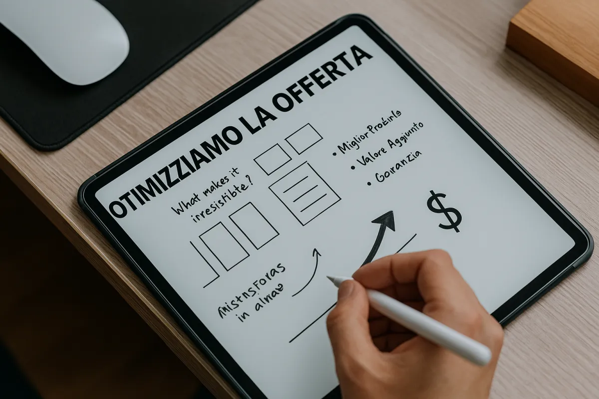 Se non vendi, il problema potrebbe non essere “il funnel”. Magari è proprio la tua offerta che fa cilecca. Noi ti aiutiamo a costruirne una così irresistibile che farà dire ai tuoi clienti: “Dove devo firmare?”. Basta proposte fiacche. È ora di trasformare il tuo business in una calamita per soldi.
